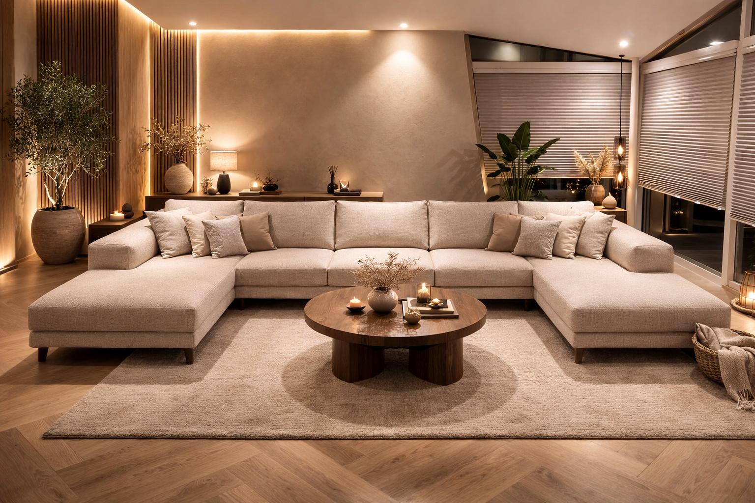 - Ruime XXL U bank van 83x435x170x170 cm (hoogte x breedte x lounge deel x lounge deel)